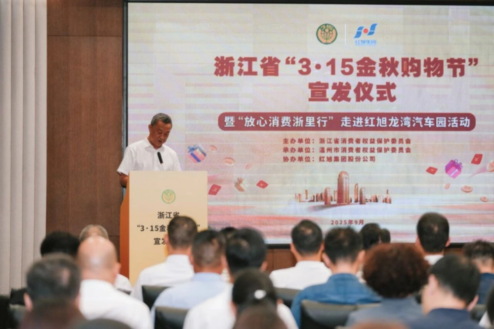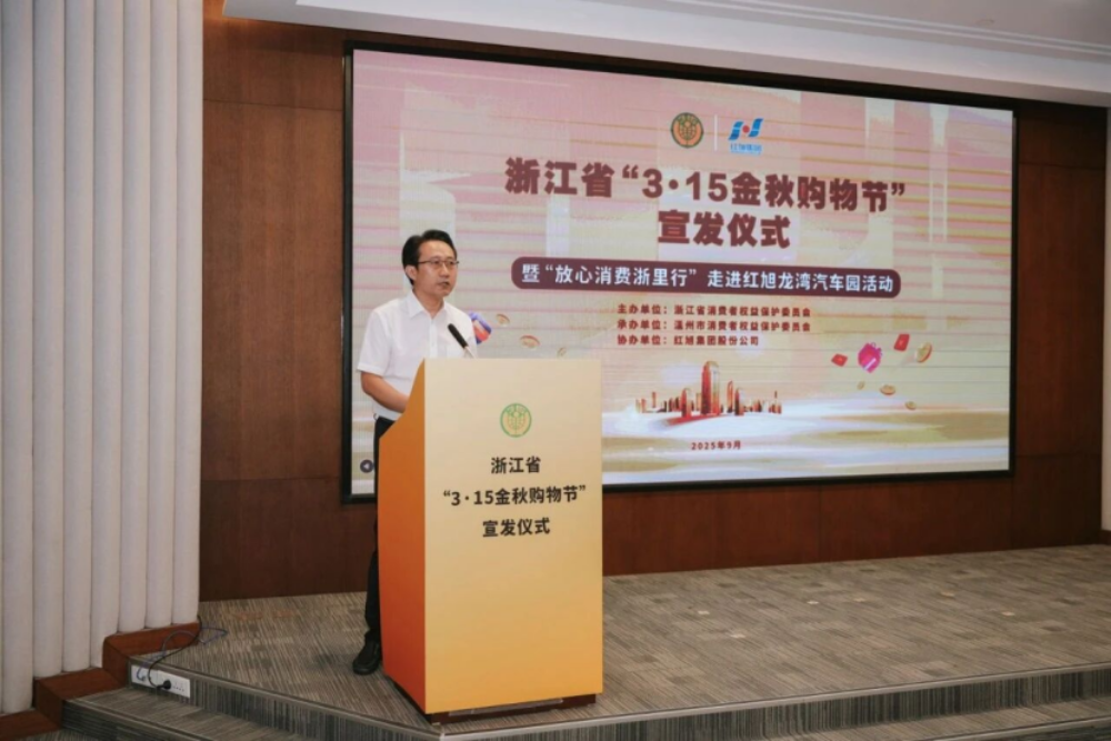 来源: 发布时间:9/11/2025 12:00:00 AM 0次浏览2025年9月11日,浙江省“3·15金秋购物节”宣发仪式暨“放心消费浙里行”走进红旭龙湾汽车园活动在红旭龙湾汽车园正式启动。省、市消保委相关领导、企业代表、媒体及消费者代表等共同出席了本次活动,一同见证了这一重要时刻。