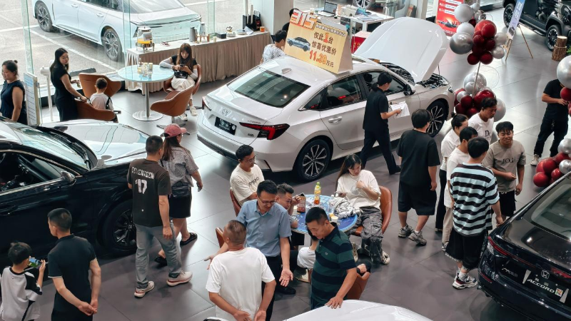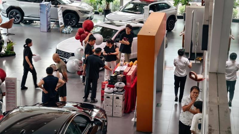 双节期间的广汽本田乐清乐广店展厅,用“人山人海”来形容毫不为过。不同于平日的购车场景,此次到店客户中,“全家总动员”式的看车团成为主力军——年轻夫妻带着孩子、长辈陪同晚辈,一大家子围绕着心仪的车型,仔细品鉴、热烈讨论。