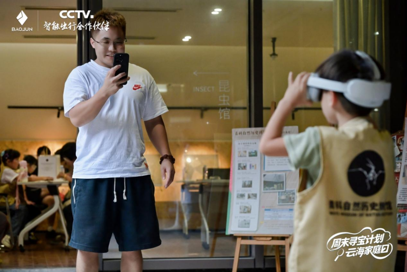 作为本次寻宝之旅的亮点,“沉浸式VR体验”环节将现场气氛推向高潮。通过先进的虚拟现实技术,参与者得以穿越时空,亲身“漫步”于史前世界,与恐龙并肩同行。这张虚实结合、充满未来感的体验照片,完美呼应了宝骏云海以智能科技拓展生活边界的产品理念,为这场自然历史之旅画上了充满科技感的惊叹号。
