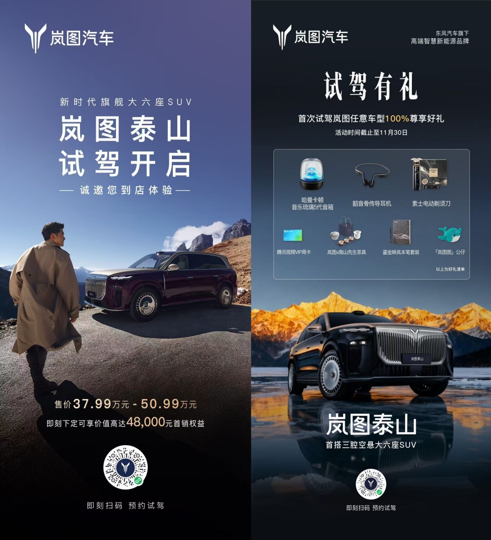温|登峰峦之境 享从容驾驭 州|岚图泰山试驾开启 红|100%尊享好礼![礼物][礼物] 图|#岚图泰山 #华系首搭三腔空悬旗舰SUV