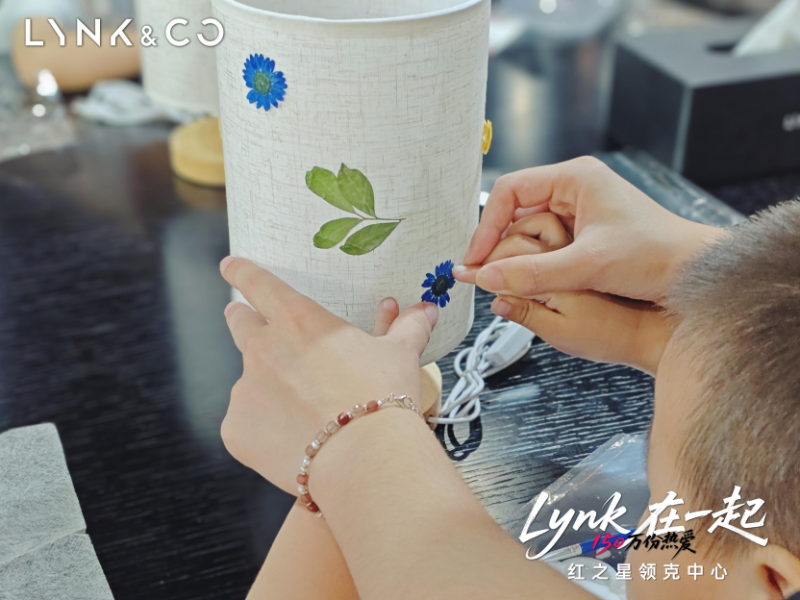 作为活动的重头戏,“蝶古巴特台灯DIY”环节点燃了全场参与者的创作热情。领克为大家准备了丰富的材料——定制蝶古巴特灯座、干花、胶水、颜料等,在专业老师的指导下,大人和孩子纷纷化身设计师,将天马行空的想象注入作品中。有的车主将领克标志性元素融入灯罩,有的则创作出星空、极光等梦幻主题,每一盏台灯都承载着独特的个性与故事。当灯光亮起的瞬间,现场响起阵阵赞叹声,这份亲手打造的光明,也成为活动最温暖的纪念品。