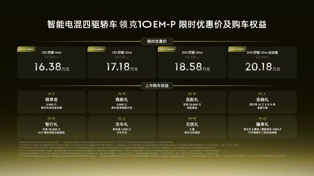 9月8日晚,领克10 EM-P正式上市,新车共推出4款配置车型