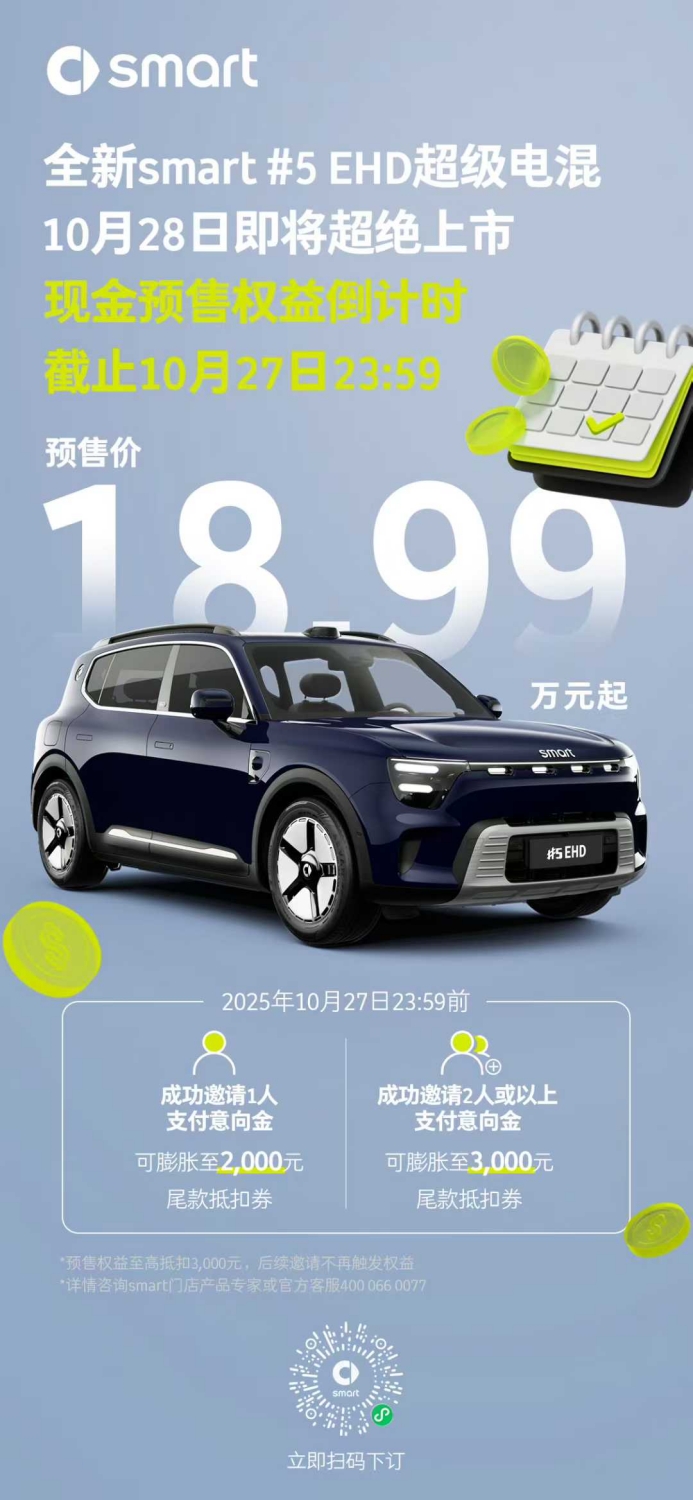 全新smart#5 EHD超级电混预售权益倒计时