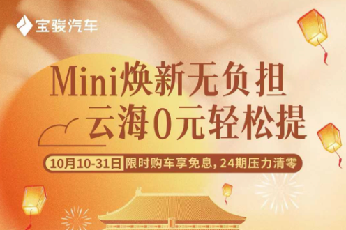 ✨金秋十月限时享免息! ----------------------- 🚘Mini焕新无负担~🎉 🚘宝骏云海 𝟬元轻松提! 📣𝙏𝙀𝙇:189 6975 0666
