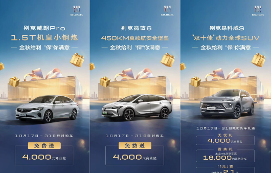 【昂科威S】“双十佳”动力全球SUV❗️ 免费送4000元商业险💰置换补贴高达18000元🪙日供低至2.1元,“1元贷”轻松购【威朗Pro】1.5T机皇小钢炮❗️免费送4000元商业险✅ 动力强劲,驾控无忧【微蓝6】450KM真续航安全堡垒❗️免费送4000元商业险✅ 纯电出行,安心省心📅 活动时间:10月17日-31日🎯 限时优惠,错过不再,马上锁定权益!