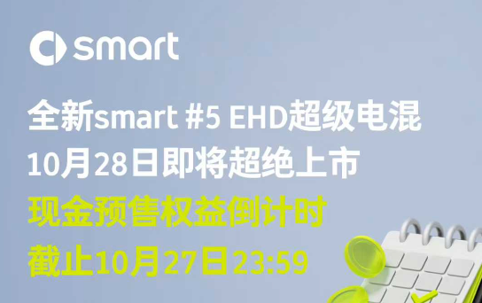 全新smart#5 EHD超级电混10月28日 即将超绝上市🚙预售权益进入倒计时❗️99元至高抵扣3000元,速来下订!
