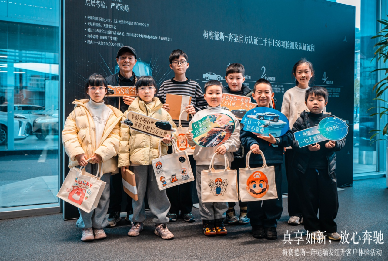 “真享如新,放心奔驰” 梅赛德斯-奔驰 官方认证二手车瑞安红升真享季活动圆满落幕 在这个特别的日子里,我们为每一位热爱奔驰的客户带来了官方认证二手车讲解,打造“客户为先”的豪华品牌体验,以真挚的服务回应现场嘉宾的咨询,更通过一系列精彩纷呈的活动,将梅赛德斯-奔驰品牌的温度注入每一个与客户相遇的瞬间。 ① 汽车寻宝大冒险 在这场汽车寻宝冒险中,孩子们将沿着精心设计的寻宝路线,仔细观察每一辆奔驰二手车,寻找隐藏在车身各处的宝藏线索。也许是一个独特的车标细节,也许是座椅上精致的缝线,这些线索都将引领他们更深入地了解奔驰官方认证二手车的魅力。 ② 官方二手车检测 专业的工作人员化身为耐心的导师,手把手教孩子们如何使用简单的检测工具,检查汽车的外观、轮胎、仪表盘等重要部位。通过亲手检测,他们不仅能学到实用的汽车知识,还能培养自己的观察力和动手能力。 ③ 托特包DIY 在托特包DIY环节,孩子们的创意将得到尽情释放。在宽敞明亮的活动区域,摆放着有趣的装饰材料。孩子们可以根据自己的喜好,设计并制作独一无二的托特包。这个托特包都将成为他们此次探秘之旅的专属纪念品,承载着满满的欢乐回忆。这次活动,不仅是一次充满乐趣的冒险,更是孩子们学习与成长的宝贵机会。在这里,他们将收获知识、锻炼能力、结交伙伴,度过一段无比欢乐的时光,同时也让孩子们在欢笑中开启了对汽车世界的奇妙探索!
